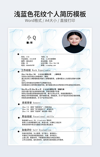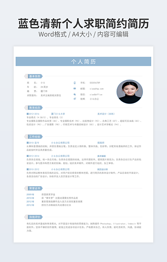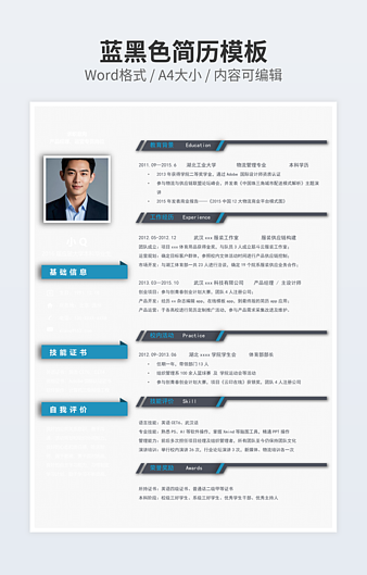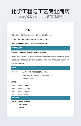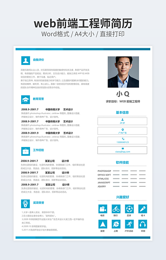 本作品内容为个人求职简历下载,大小为2.05MB,作品为高清大图模板,格式为docx, 属于其他模板,作品模板源文件下载后可用编辑替换,模板中如有人物画像仅供参考禁止商用。小Q办公网-提供简历,PPT,Word,Excel优质模板素材下载模版平台,拥有海量的工作总结、竞聘求职、年终颁奖、计划书等。 通过小Q办公网下载其他模板源文件编辑修改源文件文字和图片即可使用。