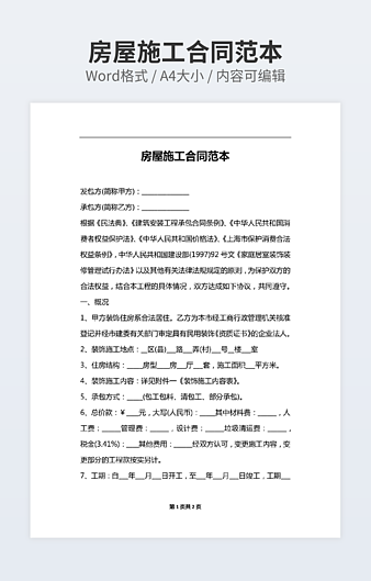 【特殊限制】设计师仅对作品中独创性部分享有著作权,对作品中含有的国旗、国徽等政治图案不享有权利,仅作为作品整体效果的示例展示,禁止商用。 相关关键词: 通用 版本 建筑装饰 工程施工 合同